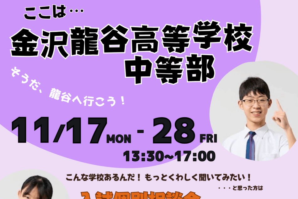 金沢龍谷高等学校中等部 第2回体験入学のお知らせ