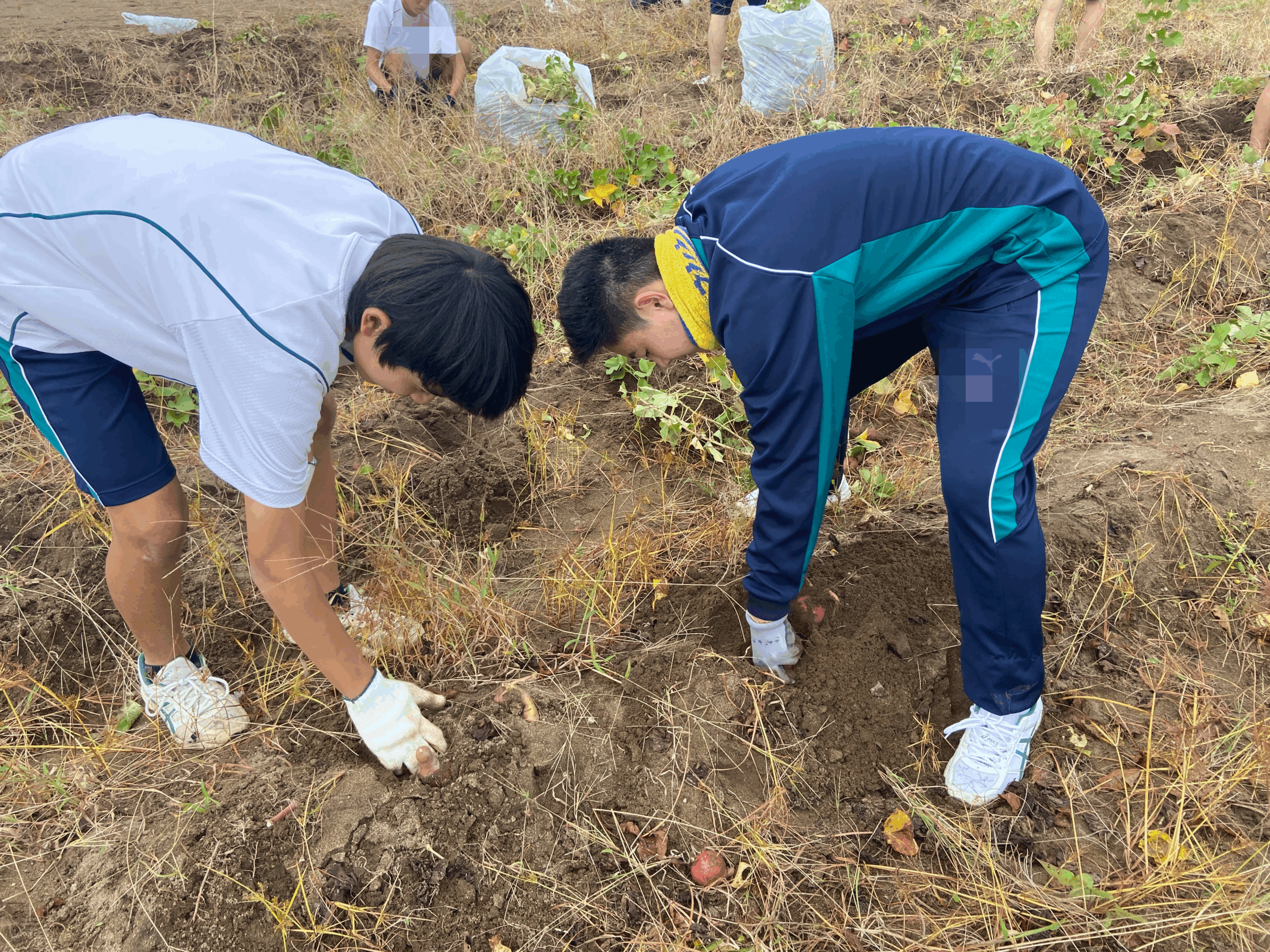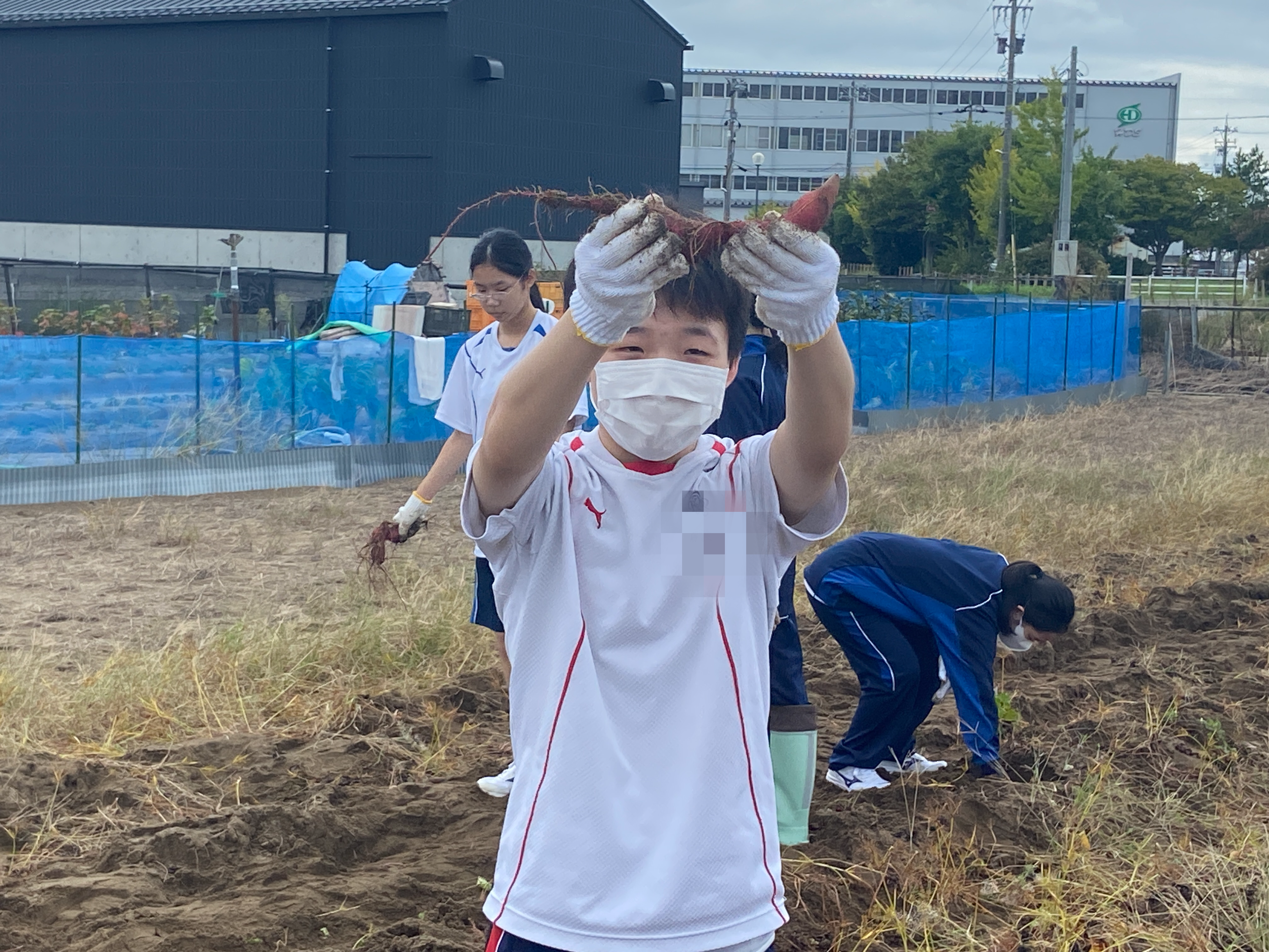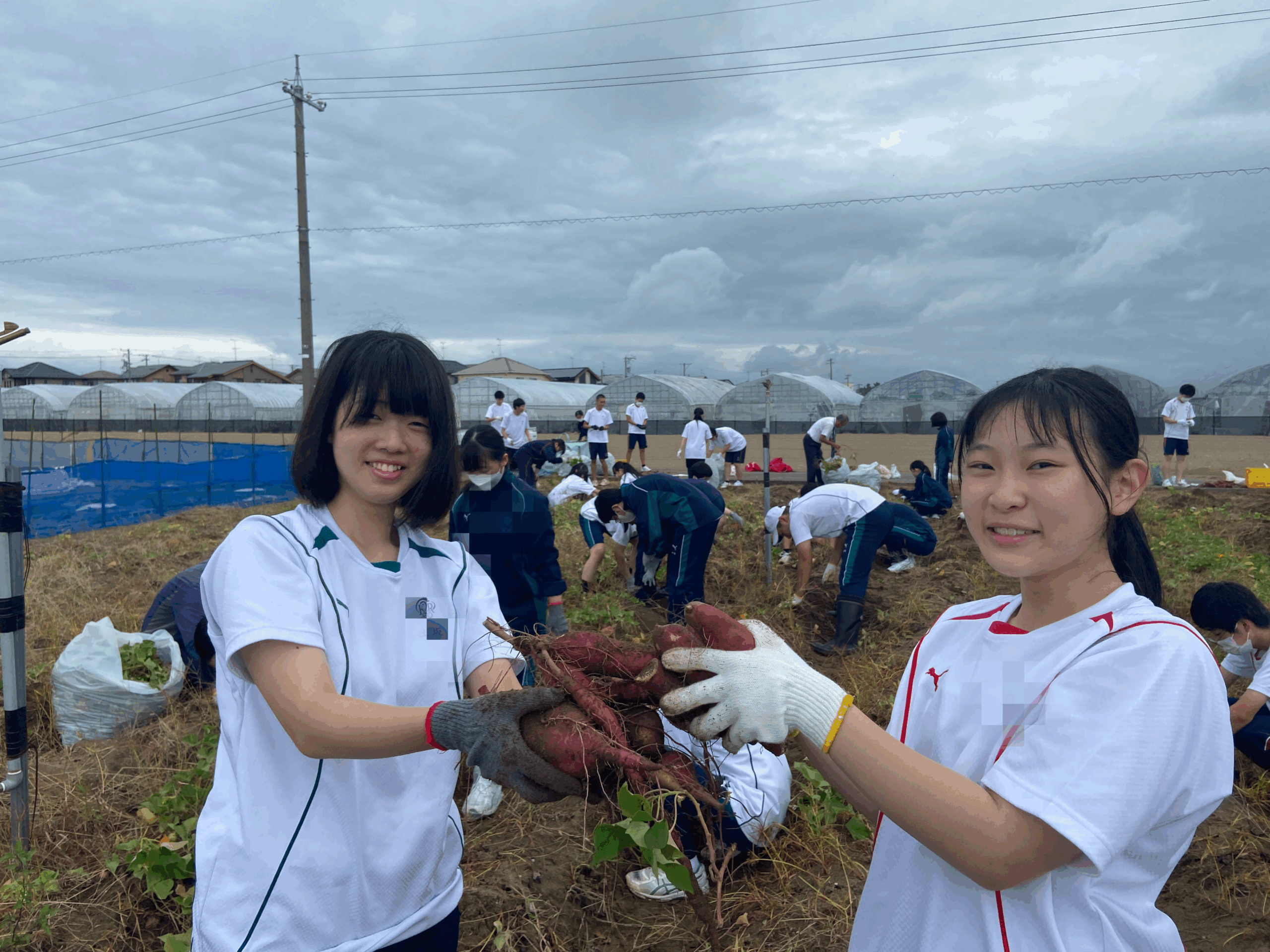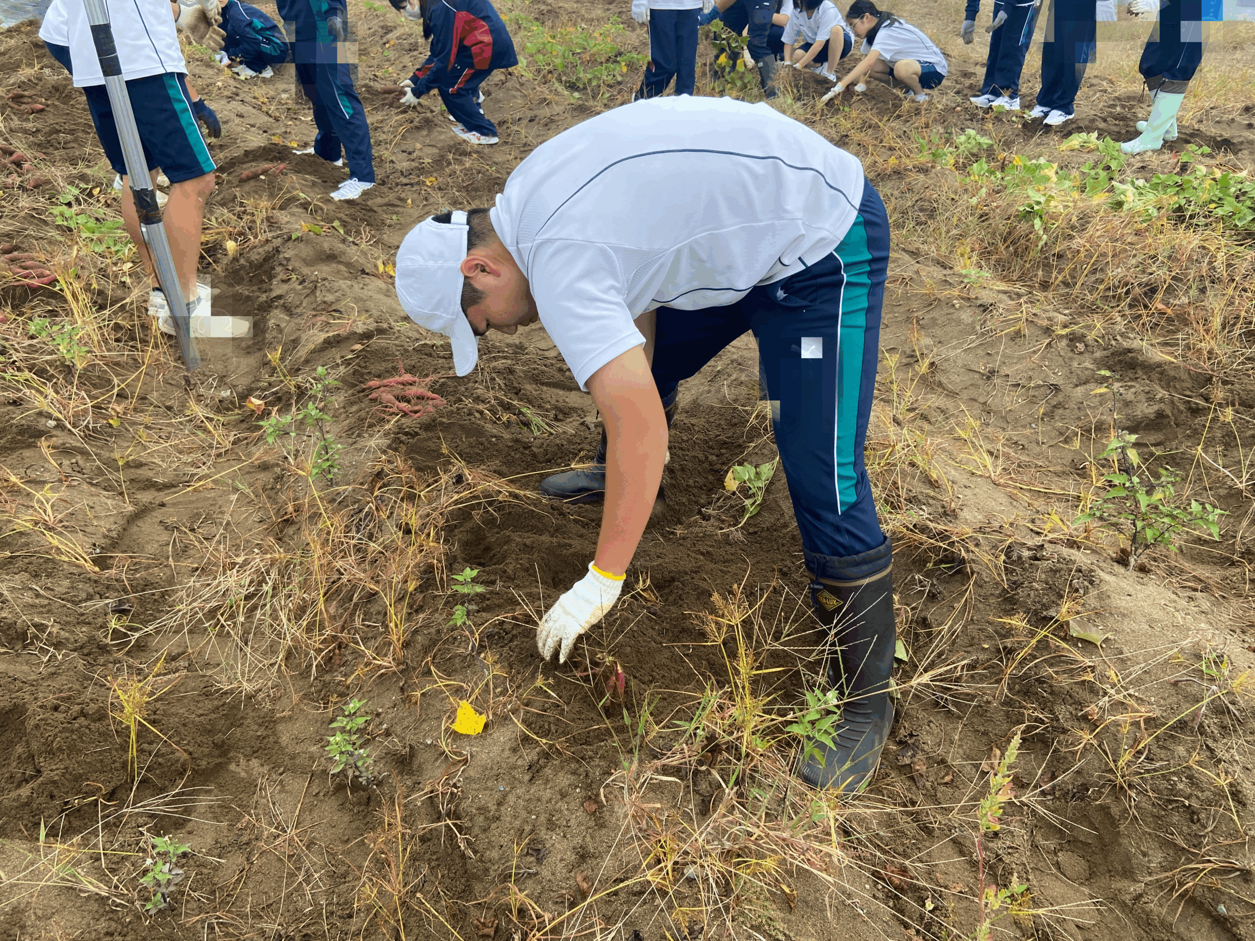 21Hの生徒と中等部の生徒が合同でさつまいも掘りを行いました。今回収穫したさつまいもは、6月にみんなで協力して植えたもの。生徒たちは軍手を真っ黒にしながらも、笑顔いっぱいで次々と大きなさつまいもを掘り出していました。