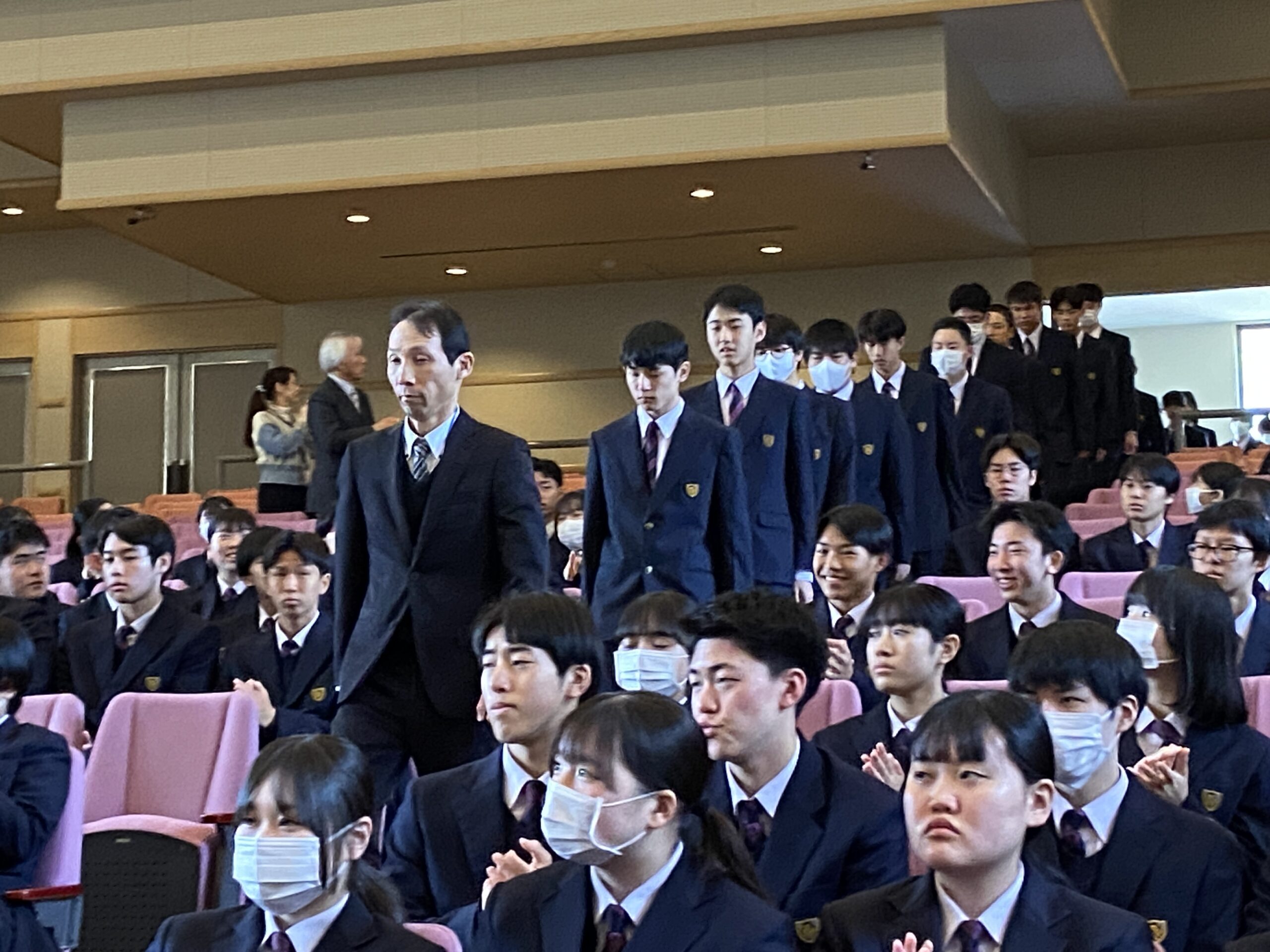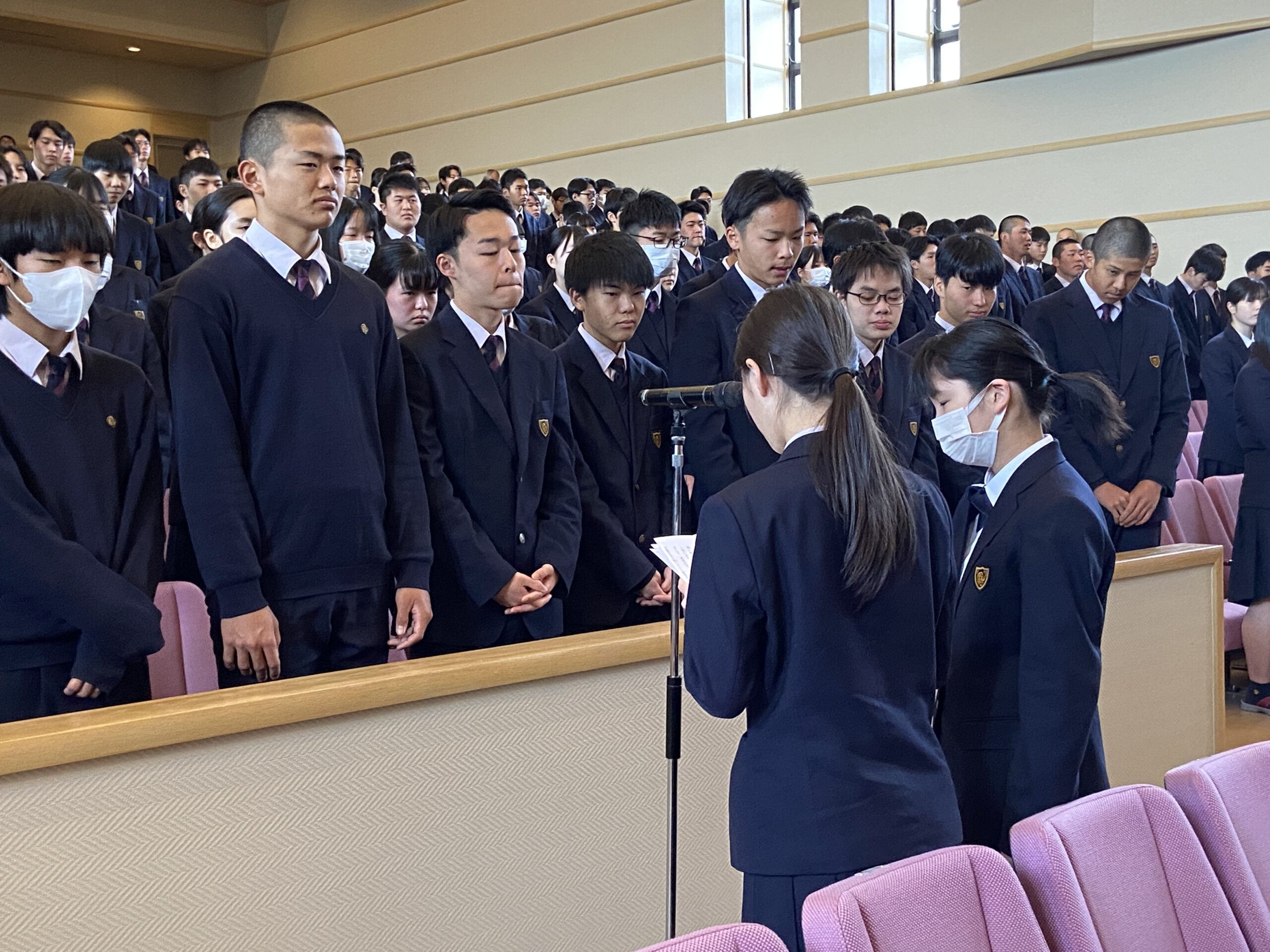 1限目には対面式が行われ、中等部2・3年生や高校生と新入生が初めて顔を合わせました。少し緊張した様子も見られましたが、あたたかい拍手に包まれ、新たな学校生活への期待が高まりました。