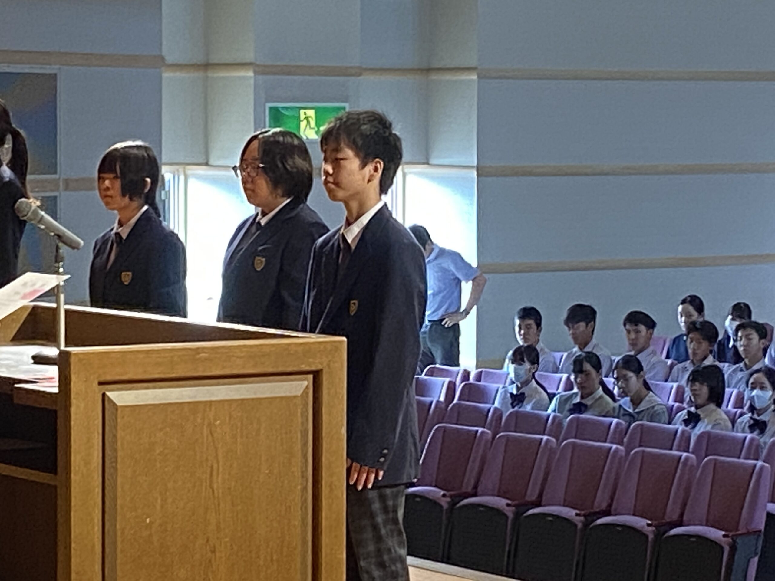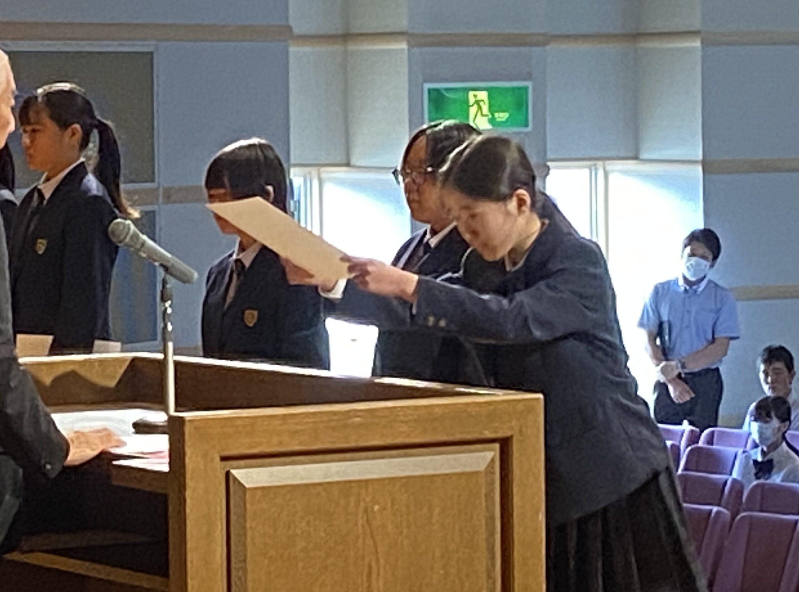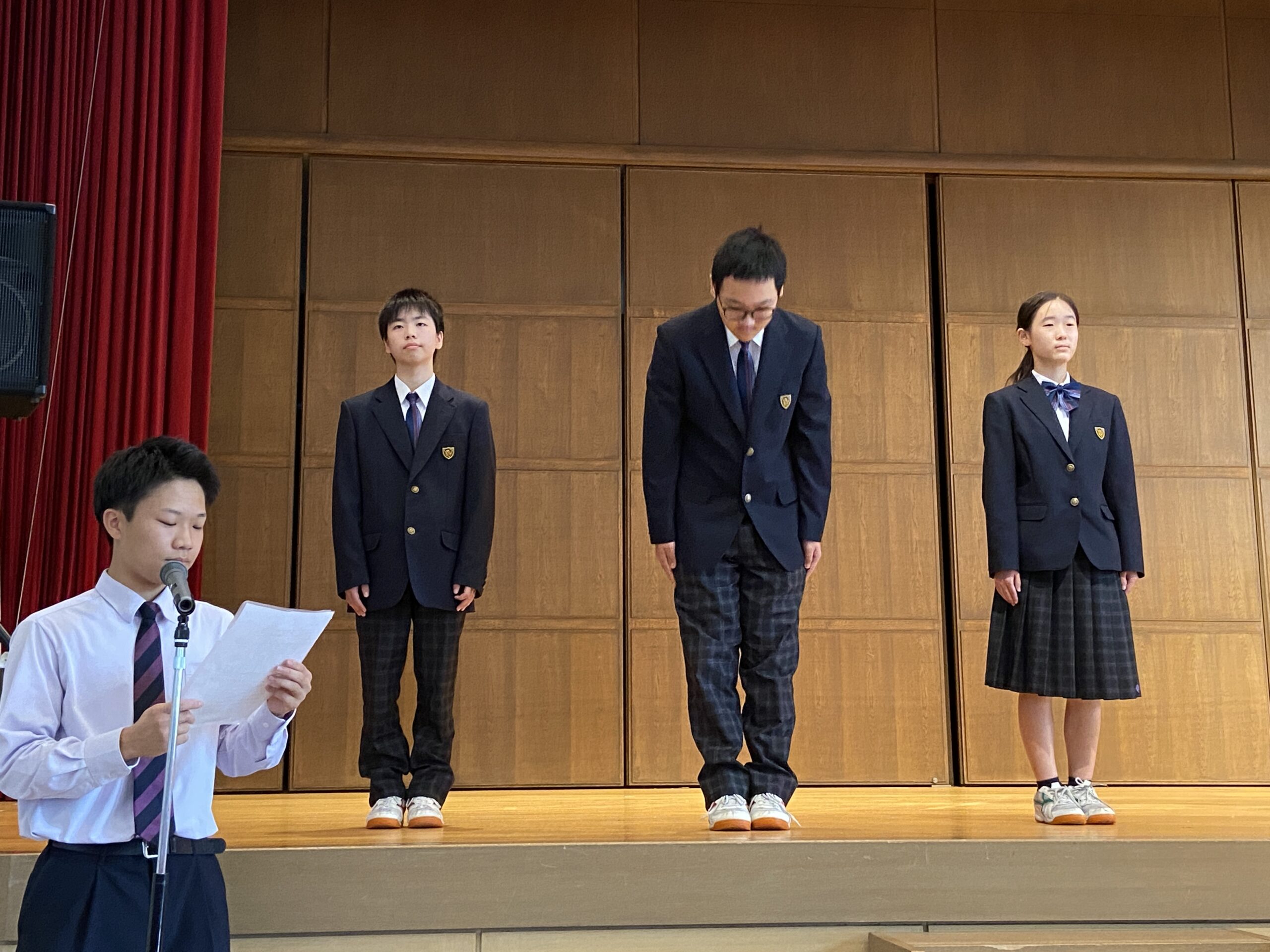 後期生徒会役員の認証式が行われ,中等部からも3名の生徒が新たに役員として認証されました。