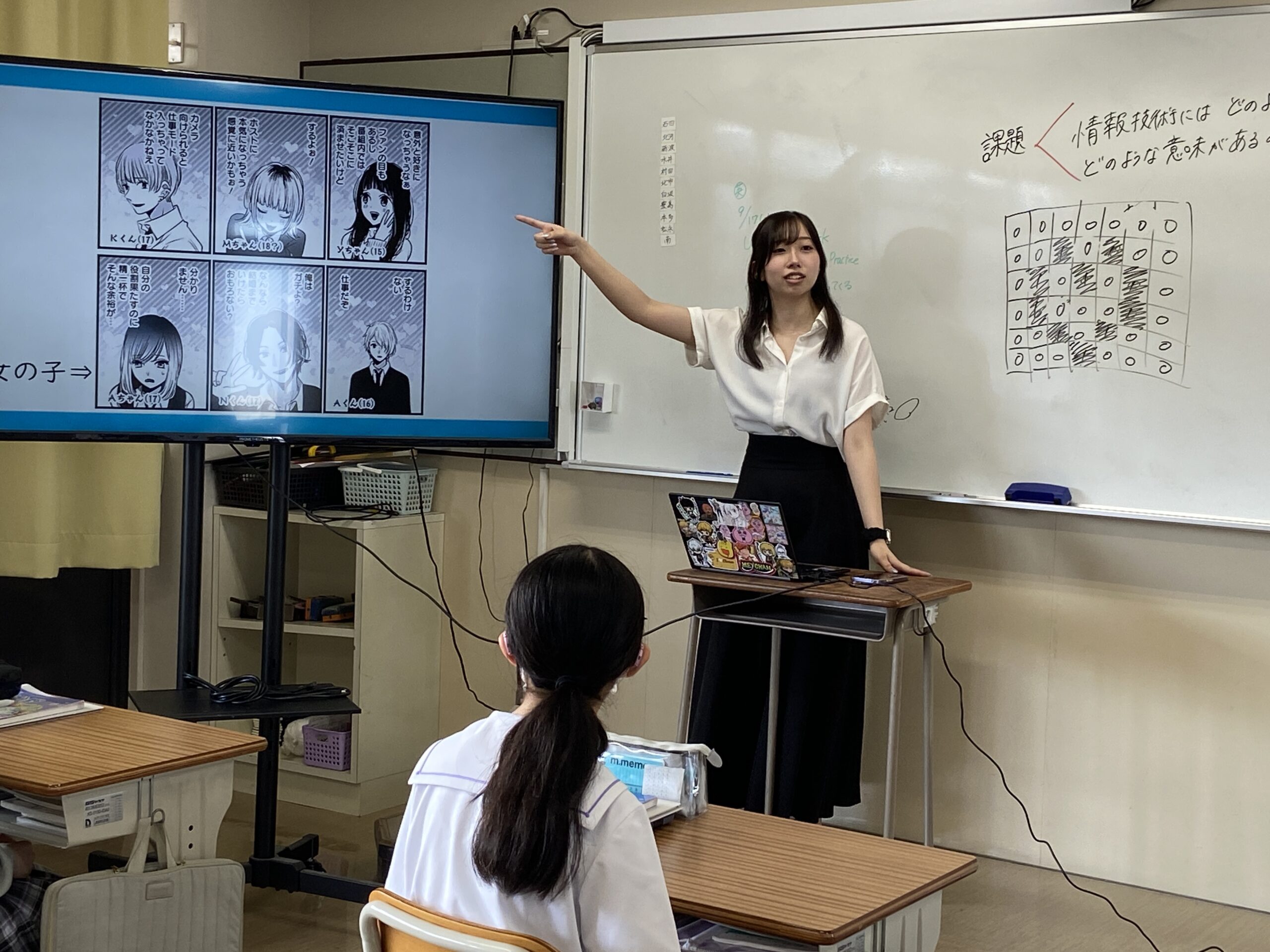 中等部2年生を対象に、金沢工業大学の鍋島亜由美先生を講師としてお迎えし、情報の授業の第1回目を行いました。