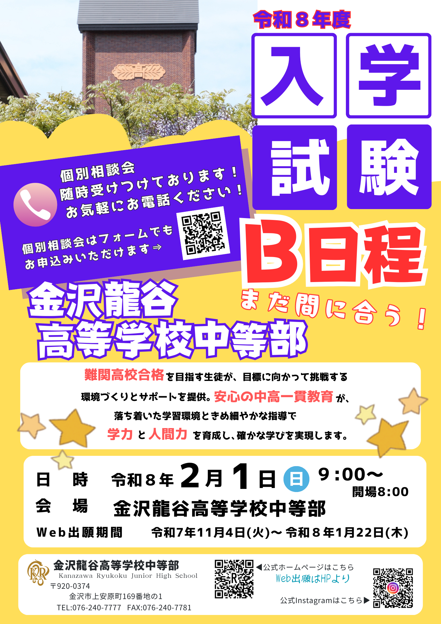 Web出願期間:令和7年11月4日(火)~令和8年1月22日(水)