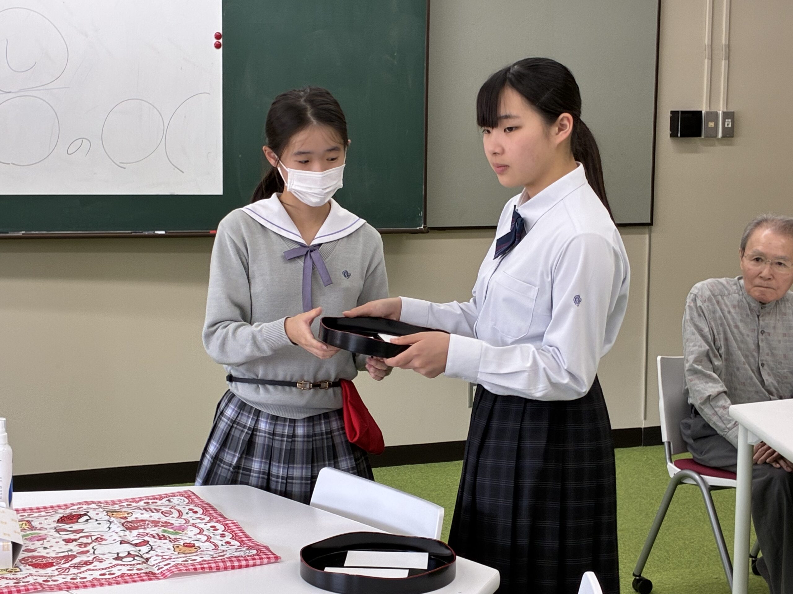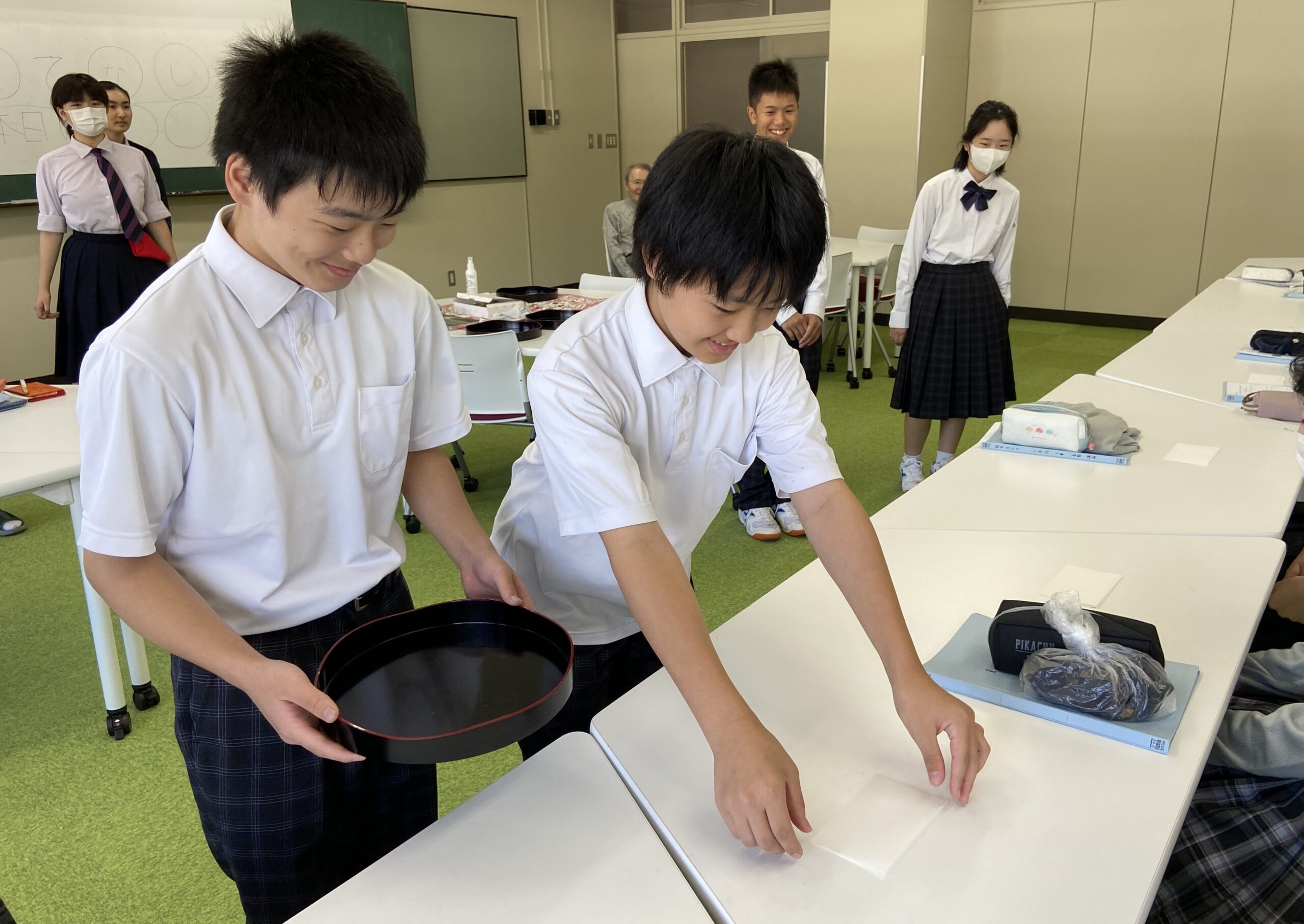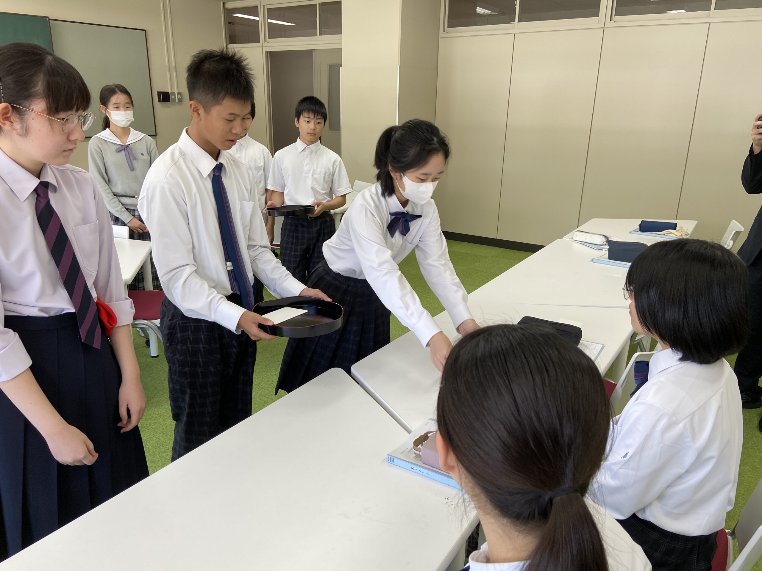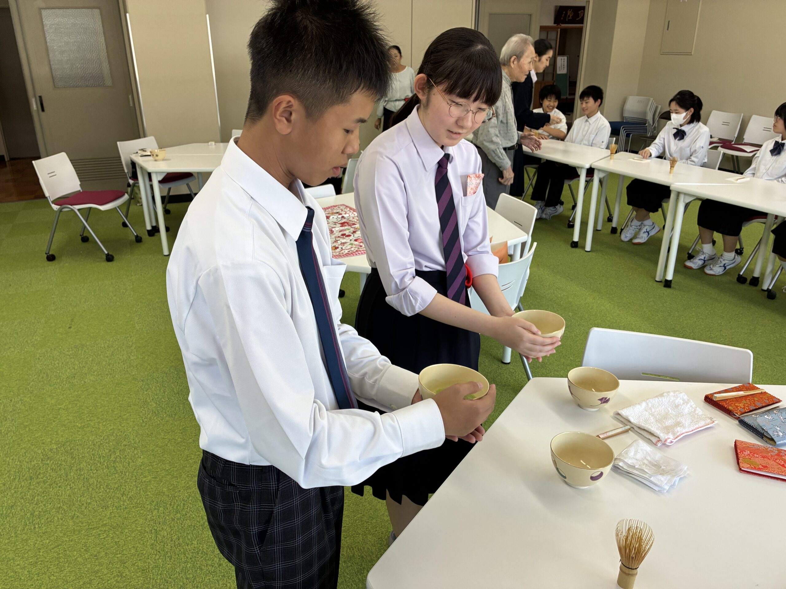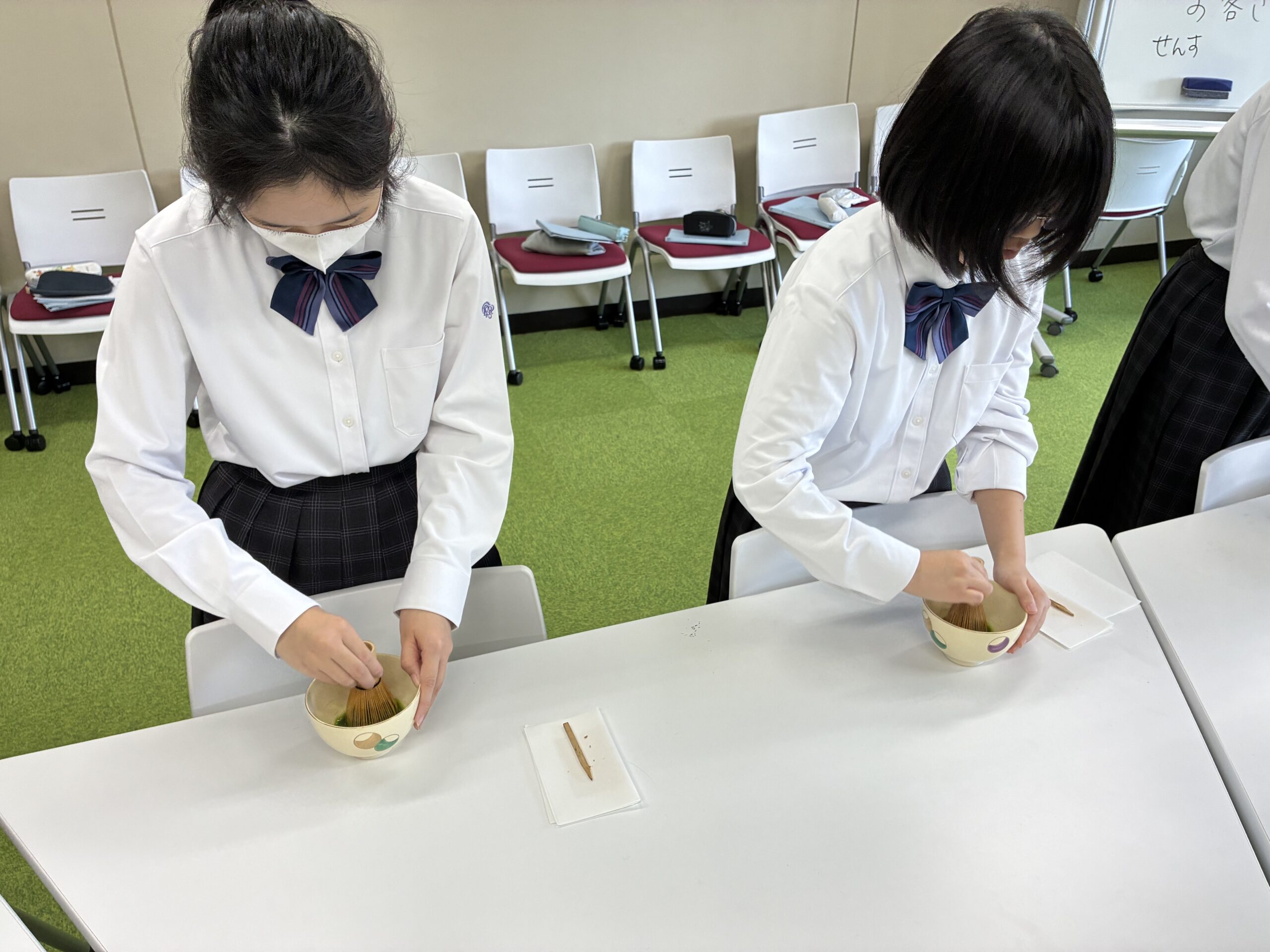 初めての所作に緊張し、手が震える場面もありましたが、生徒たちは一つひとつの動作に心を込めて取り組み、茶道の奥深さと礼儀作法の大切さを感じることができました。